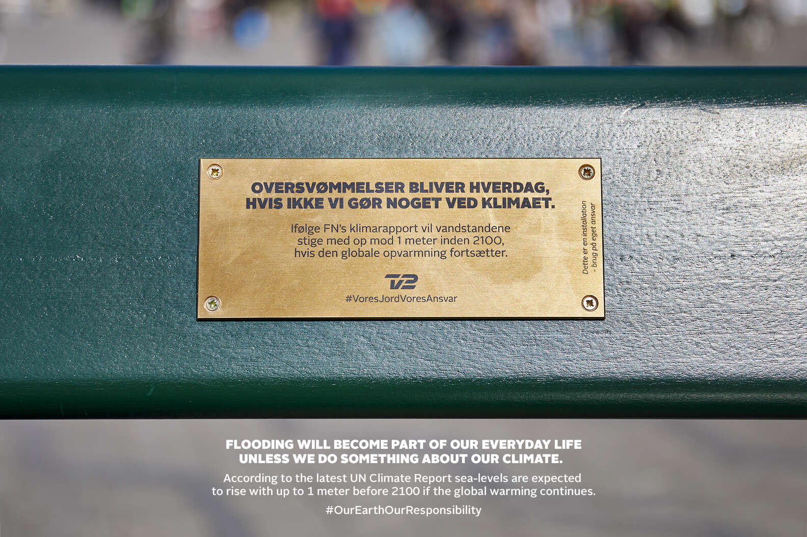 Penempatan 'Bangku Kopenhagen - Edisi 2100' adalah bagian dari kampanye 'Bumi Kita - tanggung jawab kita' oleh saluran televisi tersebut. Proyek ini dimaksudkan untuk membuat orang-orang menaruh perhatian terhadap perubahan iklim dan bahaya naiknya permukaan laut .